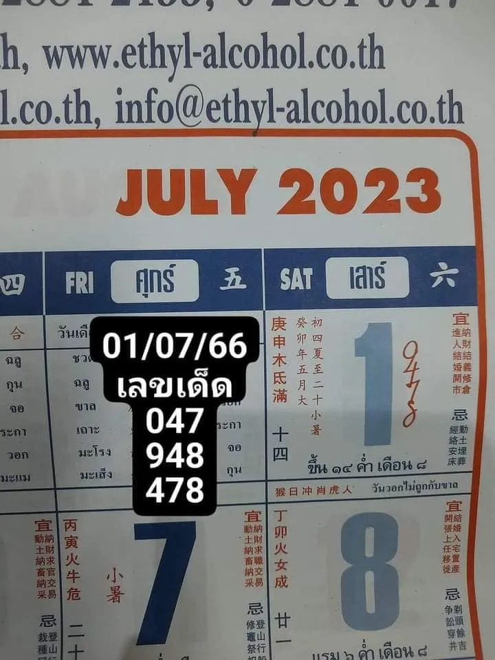 หวยปฏิทินจีน 1-7-66