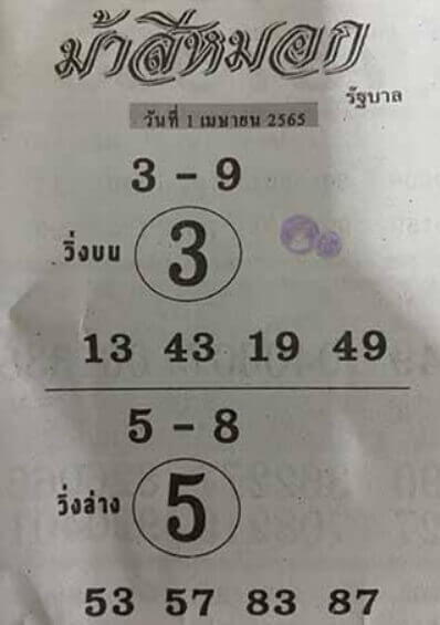 หวยม้าสีหมอก 1/4/65