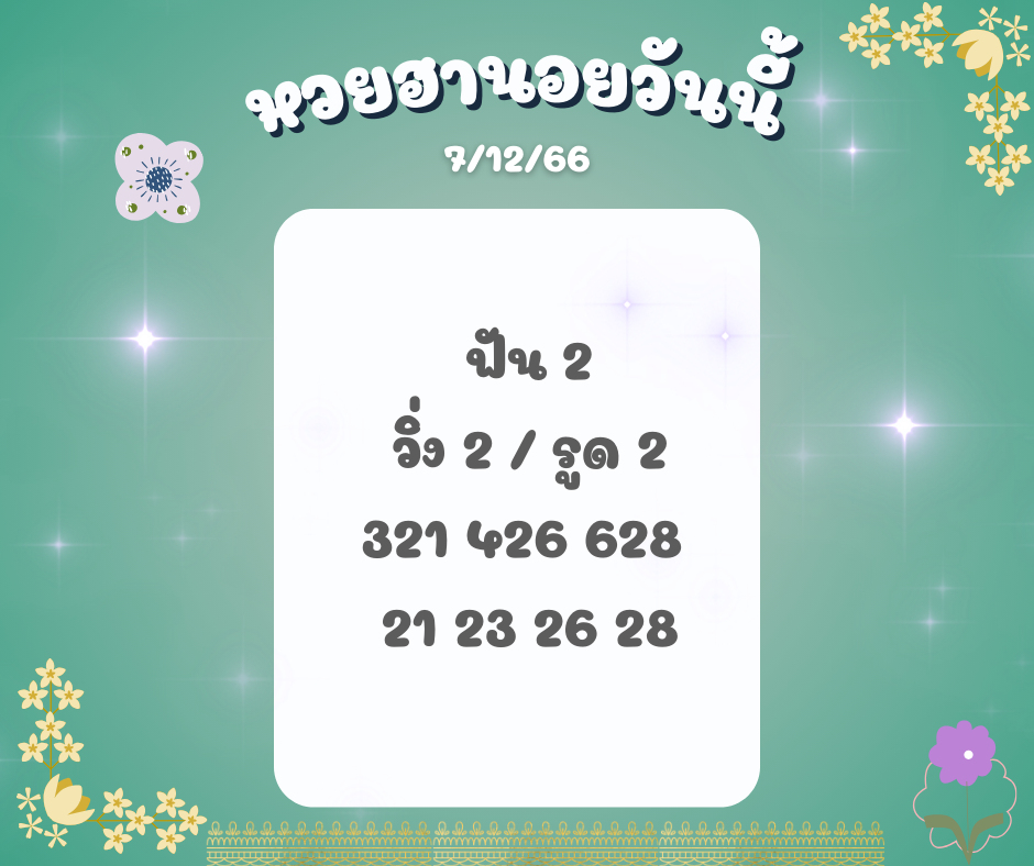 หวยฮานอยวันนี้ 7-12-66 มาร่วมหาแนวทาง ร่วมสนุกลุ้นฮานอยทุกวัน หวยฮานอยที่เราได้นำมาแจก ร่วมสนุกแทงหวยง่ายๆ รวย ๆ ค่ะ !