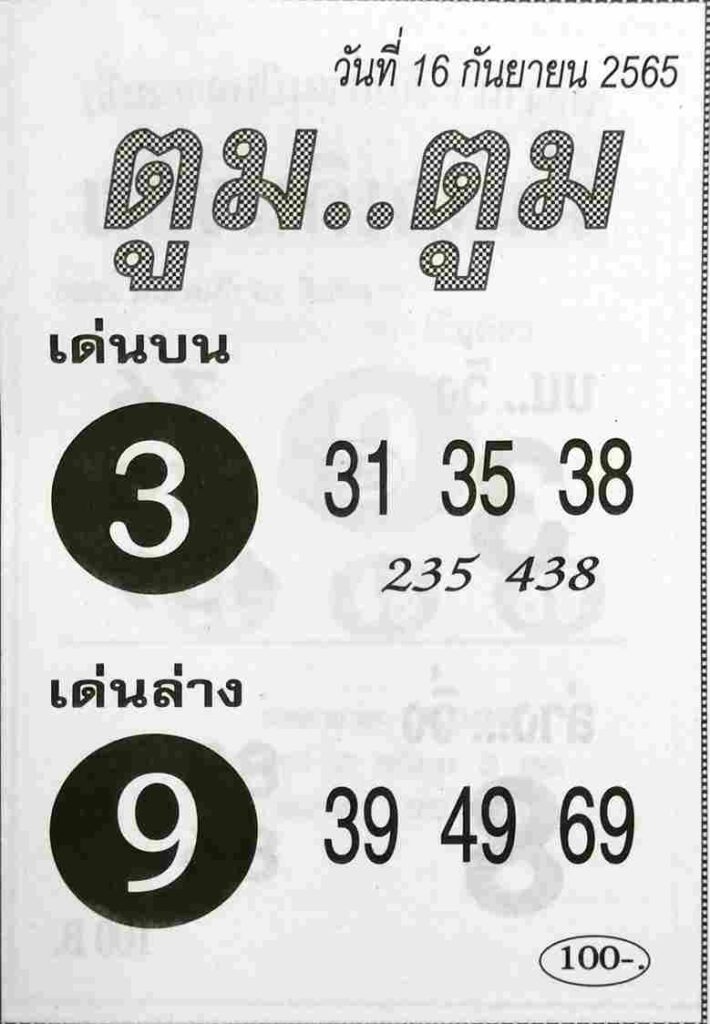 เลขดัง หวยตูมตูม16/9/65 หวยซองแม่นๆ เข้าทุกงวด มั่นใจได้ ทันทุกข่าวหวย มาอัพเดทให้ดูกันฟรีๆ ที่คอหวยห้ามพลาด !!