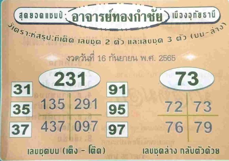 เลขดัง หวยทองกำชัย16-9-65 ส่องแนวทาง หวยงวดนี้ ได้ที่นี่