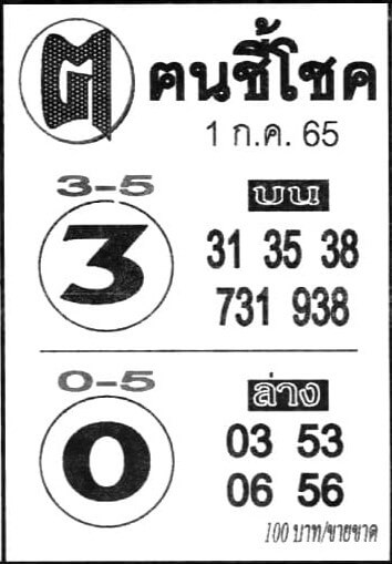 เลขเด็ดงวดนี้ หวยคนชี้โชค 1/7/65