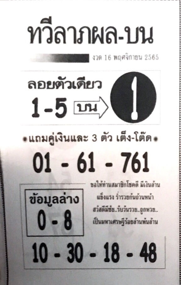 เลขเด็ดงวดนี้ หวยทวีลาภผลบน16-11-65 รวมเลขเด็ด ซองดัง หวยแม่นๆงวดนี้ ที่คอหวยไม่ควรพลาด !