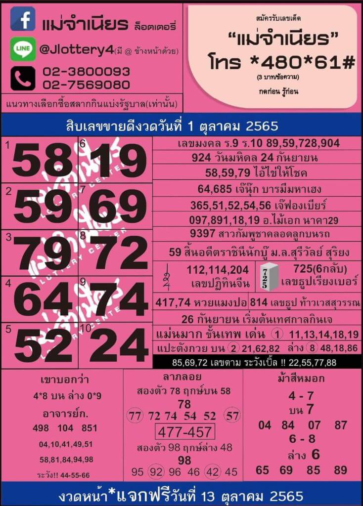 เลขเด็ด หวยแม่จำเนียร16-10-65